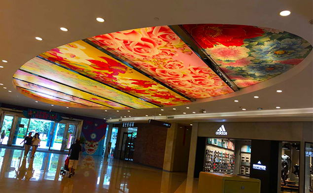 卡布軟膜燈箱不僅限于室內(nèi)壁掛式或是立式的廣告,也不限于正正規(guī)規(guī)的長方形或正方形,像這種商業(yè)類的天花軟膜燈箱現(xiàn)在也是裝飾裝潢的新形勢,特別創(chuàng)意的廣告可以快速吸引消費(fèi)者眼球.